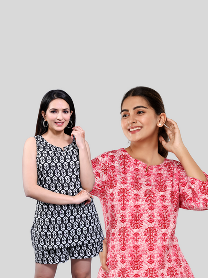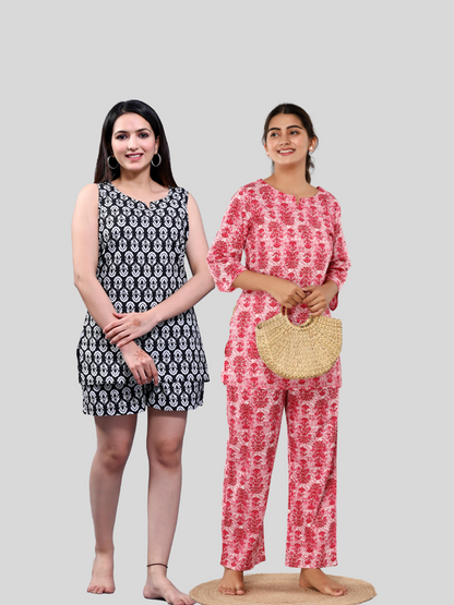 A lounge wear and shorts set combines a comfortable, easy-going top with matching shorts. Designed for relaxation, the top is typically soft and roomy, while the shorts have an elastic waistband for a flexible fit. Ideal for lounging at home or casual outings, this set offers effortless comfort and style.