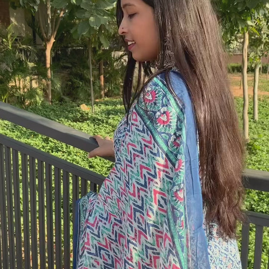 Blue Kurti Pant Set with Dupatta