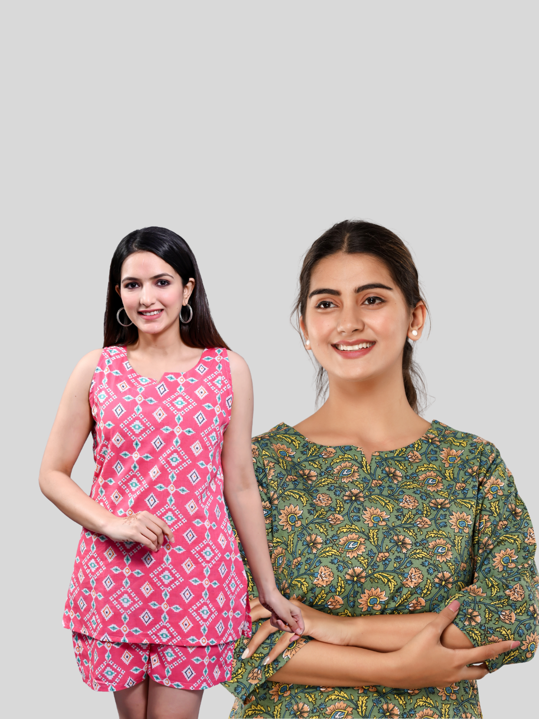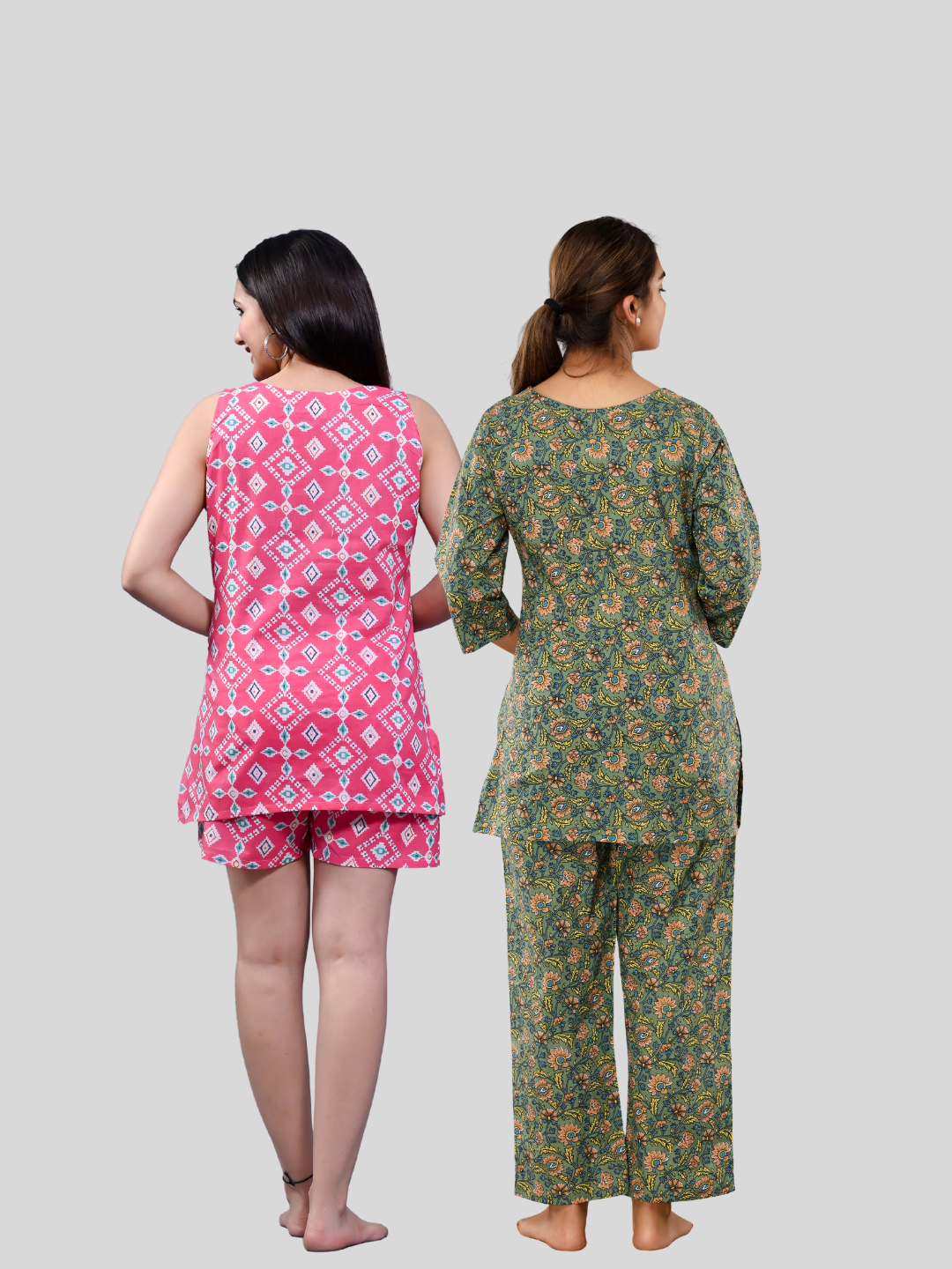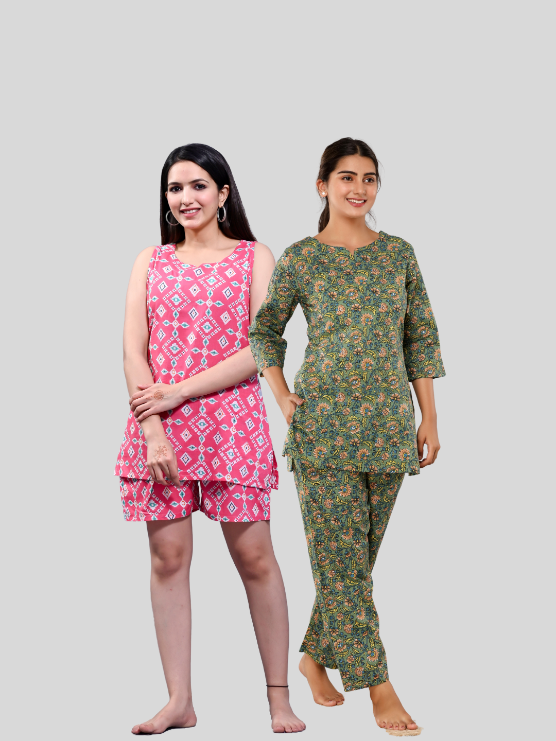 A coordinated outfit that combines the comfort of loungewear with the coziness of sleepwear. Typically featuring a matching top and pants or shorts, it’s crafted from soft, breathable materials like cotton or jersey, making it perfect for relaxing at home and transitioning smoothly into sleep.