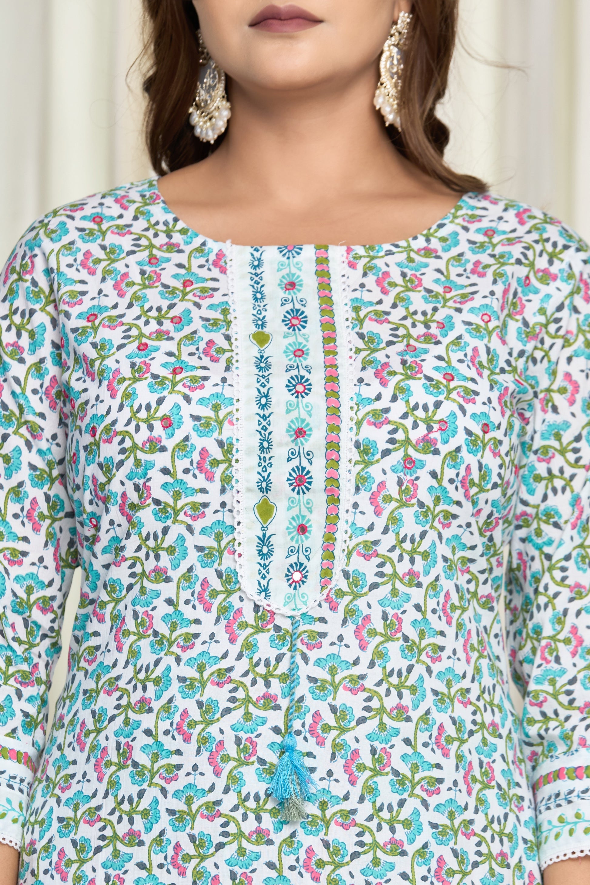 Sitara Bloom Cotton Kurti Pant Dupatta Set